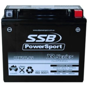 BATTERY DETAILS Length 150MM Width 69MM Height 104MM Terminal Height 105MM Weight (kg)2.7 Voltage12 CCA200 Australia’s Most Powerful AGM Motorcycle Battery Range “Cover 97% of your battery sales with just 40 XR Series AGM Batteries.” SSB Powersport High-Performance AGM batteries are a versatile and reliable alternative to conventional lead-acid batteries. Each cell is sealed by a valve preventing penetration by