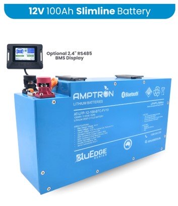 AMPTRON BLUEDGE SLIMLINE 12V 100AH/200A CONTINUOUS AT-LFP-12-100-BTC-FV10 LITHIUM LIFEPO4 BATTERY
