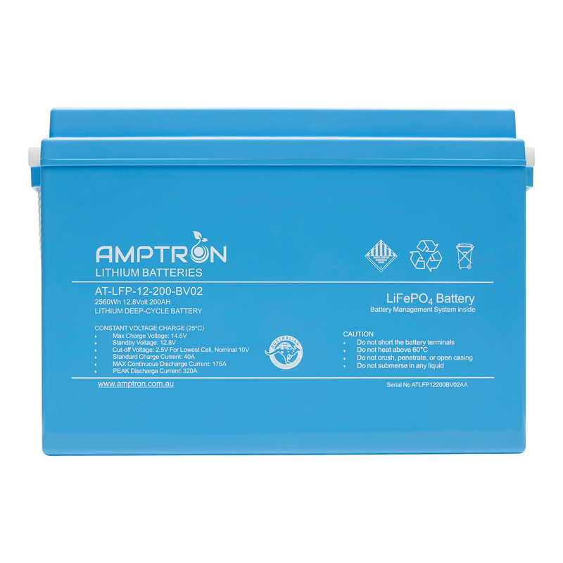 AMPTRON? 12V 200Ah / 175A Lithium LiFePO4 Batteries are an alternative replacement (AR) for any application currently using a deep cycle Gel, AGM or Flooded Lead Acid battery. The maximum continuous discharge current is 175A and peak discharge current 320A for 5 seconds.