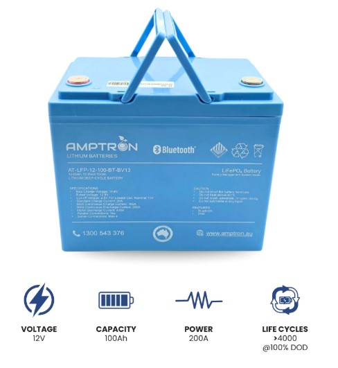 AMPTRON BLUE TOOTH 12V 100AH/200A CONTINUOUS AT-LFP-12-100-BT-BV13 LITHIUM LIFEP04 BATTERY