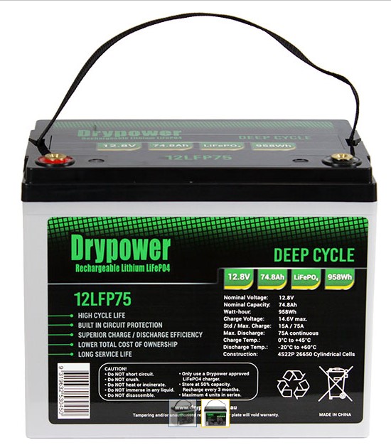 DRYPOWER 12LFP75 12.8V 74.8AH LiFeP04 LITHIUM BATTERY